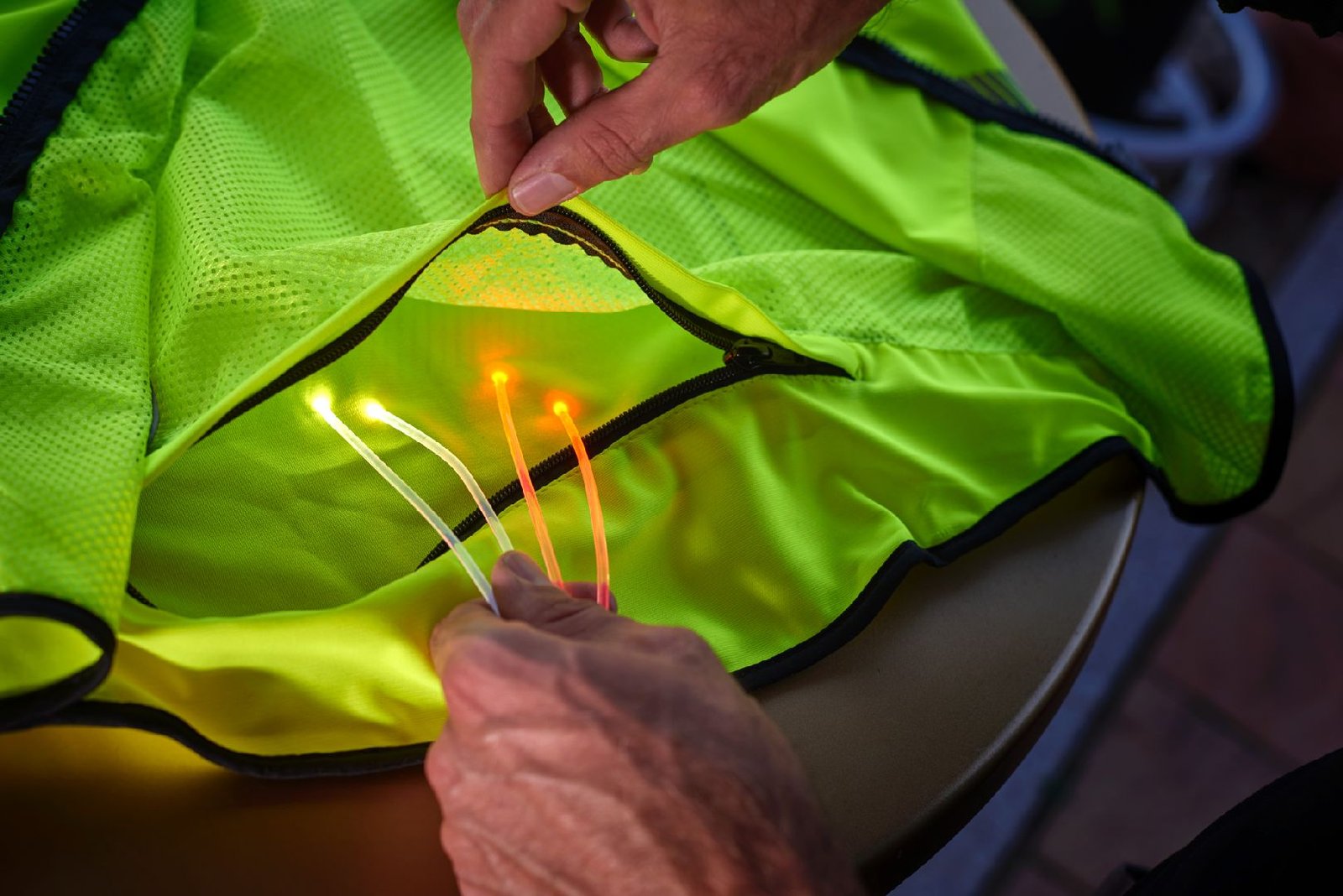 yeni nesil yüksek görünürlüklü iş ve spor kıyafetleri alanını şekillendiriyor. Kıyafetlerdeki homojen aydınlatma sayesinde insanların görünürlüğü ve böylece güvenliği de artıyor.