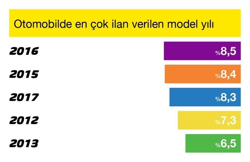 sahibinden.com’un Şubat verilerine göre en çok beyaz, siyah, gri, gümüş gri ve kırmızı renkli, yakıt türü dizel olan otomobil ilanları verildi. Geçtiğimiz aya göre en çok ilanı verilen otomobiller bir yaş daha gençleşti ve liderlik 2016 model otomobil ilanlarının oldu.