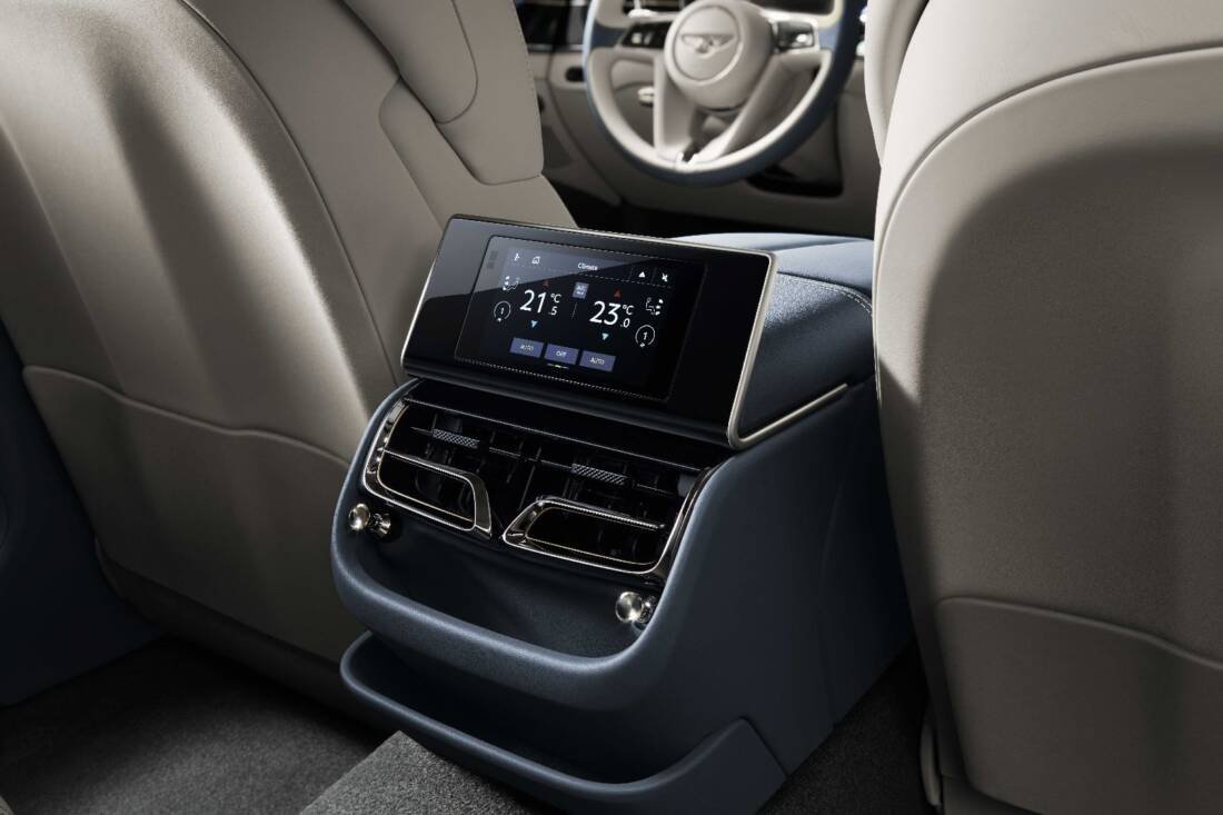 The new Flying Spur’s multi-functional Touch Screen Remote affords rear seat occupants unprecedented control over the car’s extensive range of luxury features, redefining precision control over passenger comfort.