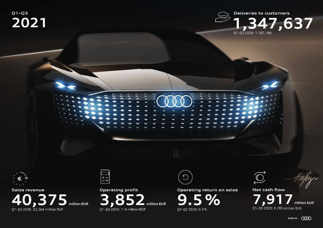 “As already announced in the first half-year, the shortage of semiconductors has affected us in the third quarter especially. We feel the consequences in our volume and financial figures. Thanks to active counter-measures and our strong operating performance we have significantly reduced the financial effects in the last nine months. Through great efforts and entrepreneurial flexibility, in the third quarter too we succeeded in demonstrating our strengths and securing our results. We therefore view the future with increased confidence,” says Jürgen Rittersberger, Audi Board Member for Finance and Legal Affairs.
