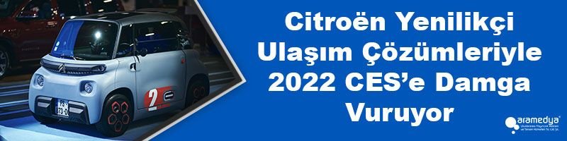 Mobilite dünyasının yenilikleriyle dikkat çekmeye devam eden Citroën, mobilite teknolojilerini 2022 Tüketici Elektroniği Fuarı’nda (CES) sergiliyor. Fransız üretici, 5-8 Ocak 2022 tarihleri arasında Las Vegas’ta düzenlenen dünyanın önde gelen elektronik, teknoloji ve inovasyon fuarında mevcut ve gelecekteki ulaşım vizyonu olan Citroën Skate ve Citroën Ami’yi sahneye çıkardı. Otonom bir teknoloji platformu olarak dikkat çeken Skate, kullanıcılarını şehir içerisinde bir noktadan diğerine taşırken onlara benzersiz bir araç içi deneyimi yaşatıyor. Bununla birlikte, geçtiğimiz ay içerisinde Türkiye lansmanı da gerçekleştirilen ve Mart ayından itibaren satışa çıkacak olan elektrikli mobilite çözümü Citroën Ami de CES’in yıldızları arasında yer alıyor. Ami, hem bireysel kullanıcıların hem de profesyonellerin mikro mobilite ihtiyaçlarına cevap veririken, erişilebilir, elektrikli ve ultra kompakt yapısı ile de dikkat çekiyor.