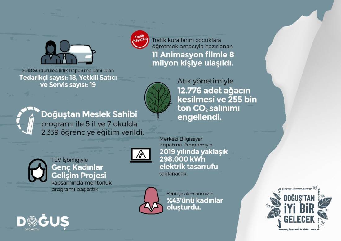 2009 yılında otomotiv sektöründe kendi segmentinde sürdürülebilirlik raporu yayınlayan dünyadaki ve Türkiye’deki ilk ve tek şirket olan Doğuş Otomotiv, 2018 yılı Kurumsal Sürdürülebilirlik Raporu’nu yayınladı. Raporda Doğuş Otomotiv’in 2018 yılında sosyal, çevresel, etik ve ekonomik alanlarda hayata geçirdiği performansları yer alıyor. 2014 yılında iştiraklerinin yanında yetkili satıcı ve servisleri ile tedarikçilerini de raporuna dahil eden Doğuş Otomotiv, 2018 yılında 18 tedarikçi ve 19 Yetkili Satıcı ve Servis performanslarını da rapora ekledi.