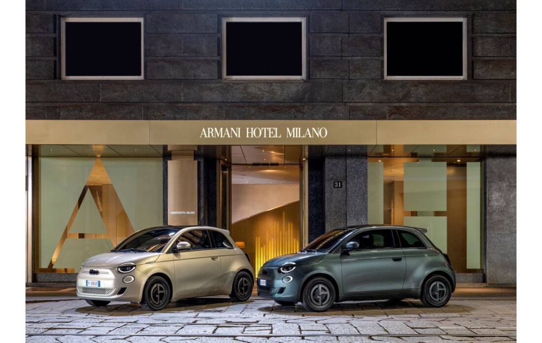 For the 500e Giorgio Armani Collector’s edition, two distinct and exclusive colors have been crafted, each enhancing the car’s elegant hatchback design. The first is dark Green micinalised, a modern and technically advanced color that mirrors Giorgio Armani’s signature style and refined taste. The second is ceramic Greige, a sophisticated and nuanced shade invented by Armani. This unique color merges gray and beige to produce a hue that is both elegant and distinctive, reflecting the innovative spirit of the collaboration.