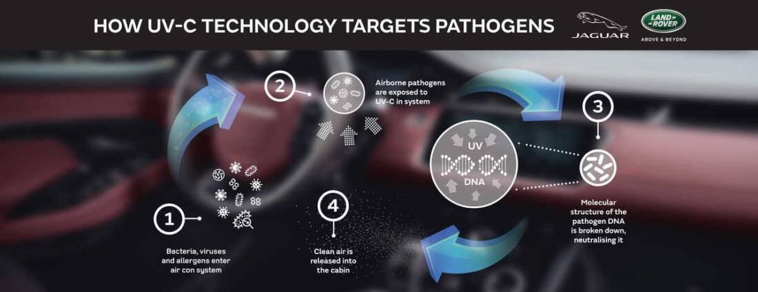 Jaguar Land Rover is exploring UV-C technology as part of its vision to create a tranquil sanctuary inside each of its luxury vehicles. The manufacturer is piloting a wide range of driver and passenger wellbeing features, as it looks towards a self-driving future.