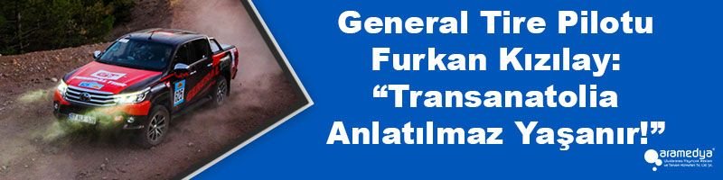Türkiye’nin ilk ve tek, dünyanın ise en büyük ve zorlu yarışlarından biri olan TransAnatolia beşinci gününde yüzde 86’sı özel etaptan oluşan parkurda mücadele ediyor. 18 Eylül’de Kars’ta sona erecek olan yarışta, etkinliğin “Resmi Lastik Sponsoru” olan General Tire ekibinde pilot Furkan Kızılay ve co-pilot Çağatay Bekmez raid kategorisinde yarışıyor. Yarışın ilk gününde rotadan 1,5 km sapmalarına rağmen arayı hızla kapadıklarını söyleyen Furkan Kızılay, TransAnatolia’nın ancak yaşanarak anlaşılabileceğini söyledi.