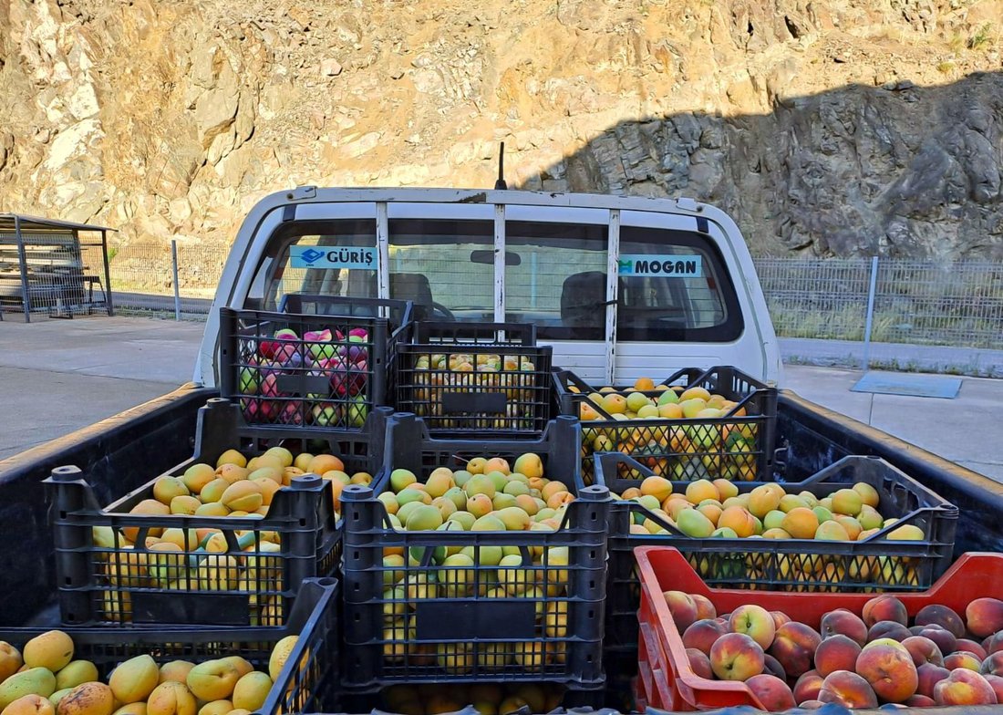 Çeşmebaşı HES’teki sosyal sorumluluk projesi kapsamında çalışanların gönüllü olarak yetiştirdiği elma, armut, üzüm, kayısı, domates, kabak, salatalık gibi sebze ve meyveler, personele ve yöredeki hayır kurumlarına dağıtılıyor.