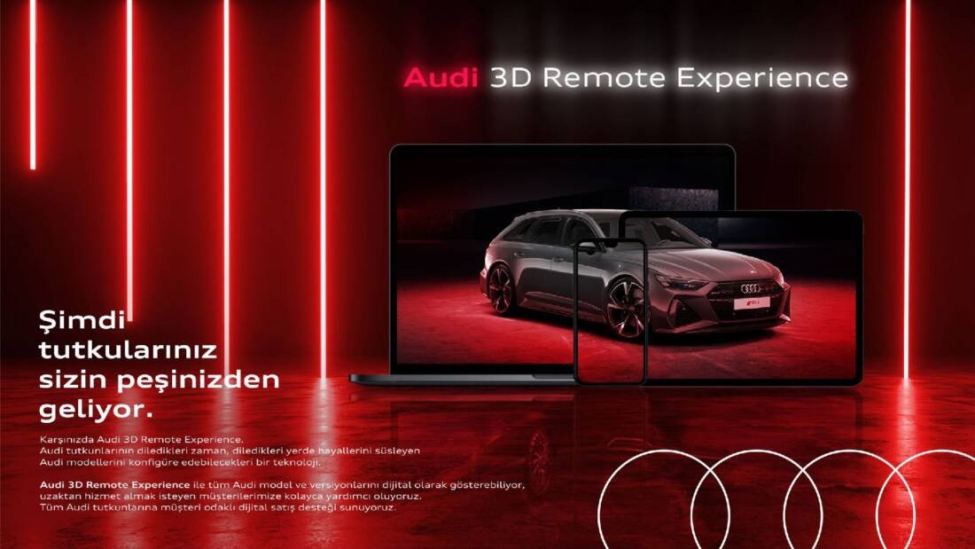 Audi Türkiye, dijital dünyanın olanaklarını kullanarak yepyeni bir satış deneyimi sunuyor. 3D Remote Experience uygulaması, Audi tutkunlarının hayallerindeki Audi modelini diledikleri zaman, diledikleri yerde satış danışmanına bağlanıp, konfigüre etmelerine ve satış sürecinin birlikte yürütülmesine olanak sağlıyor.