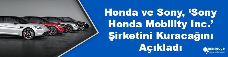 Japonya’nın global temsilcilerinden Honda ve Sony, 2022 yılının Mart ayında duyurduğu ortak girişim anlaşmasını kapsamında elektrikli araç satışı ve mobilite hizmetleri için şirket kuracağını açıkladı. Yüzde 50 ortaklık yapısı ile Japonya’da kurulması planlanan ‘Sony Honda Mobility Inc.’ şirketinin iki markanın teknoloji ve mühendislik alanlarındaki uzmanlıklarını bir araya getirerek tüketicilerin ihtiyaçlarına uygun ürün ve çözümlere odaklanması planlanıyor. 2022 yılı içerisinde yeni şirketin kuruluşunu tamamlamayı planlayan Honda ve Sony, 2025 yılında ise elektrikli araçların satışı ve mobilite hizmetlerinin hayata geçirilmesi için çalışmalara başladığını açıkladı.