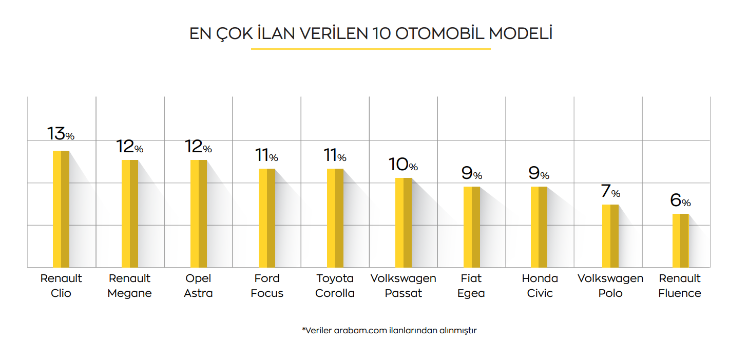 İlanlara model özelinde bakıldığında şubat ayında en çok ilan verilen otomobil modelleri Clio, Megane, Astra ve Focus oldu. Bu dört modeli ise sırasıyla Corolla ve Passat takip etti.
