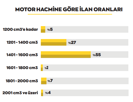 Motor hacmi arttıkça Yakıt tüketimi ve MTV miktarları da arttığı için 1.6 altındaki motorların 2.el araç alımında ideal olduğu gözlemleniyor. Diğer aylarda olduğu gibi 1.2 – 1.4 arası ve 1.4-1.6 arası motor hacimlerine sahip araç ilanları liderliklerini korumaya devam ediyor.
