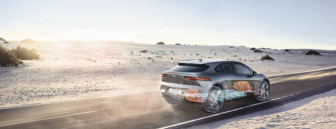 A suite of smart, range-optimising technologies includes a battery pre-conditioning system: when plugged in the I-PACE will automatically raise (or lower) the temperature of its battery to maximise range ahead of driving away. A heat pump can scavenge energy from the outside air – even in sub-zero conditions – to reduce the amount of battery energy used by the climate control system. It can even utilise heat generated by the propulsion system to warm up the cabin, further reducing demand on the battery.