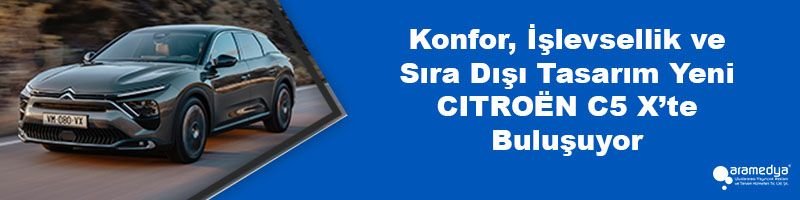 Citroën, geliştirdiği yenilikçi otomobillerle otomotiv dünyasına yön vermeye ve en ideal seçenekleri otomobil tutkunlarıyla buluşturmaya devam ediyor. Çağın ihtiyaçlarına, beğenilerine ve yeni eğilimlere cevap verecek modelleri pazara sunan Citroën, tasarım çizgileriyle fark yaratan yeni modeli C5 X’in tasarım detaylarını tanıttı. Sedan, station wagon ve SUV olmak üzere 3 farklı gövde tipinin dengeli bir şekilde harmanlanmasıyla ortaya çıkan C5 X, bir otomobilden hem çok yönlülük hem de modernlik bekleyenler için sunuluyor. Özgün bir karaktere sahip olan ve kullanıcısında seyahat etme dürtüsü uyandıran çekici tasarımlı C5 X, Citroën’in yenilikçi felsefesini ortaya koyarak otomobil dünyasında oyunun kurallarını yeniden yazmaya hazırlanıyor. C5 X; güçlü duruşu, yüksek sürüş pozisyonu sunması, 545 litrelik geniş bagaj hacmi, çevreci yapısı, sağlamlığı, aerodinamik yapısı ve üst düzey ergonomisiyle günümüz insanının çok yönlü yaşama isteğine uygun bir kullanım sunarak tüm beklentilere cevap veriyor.
