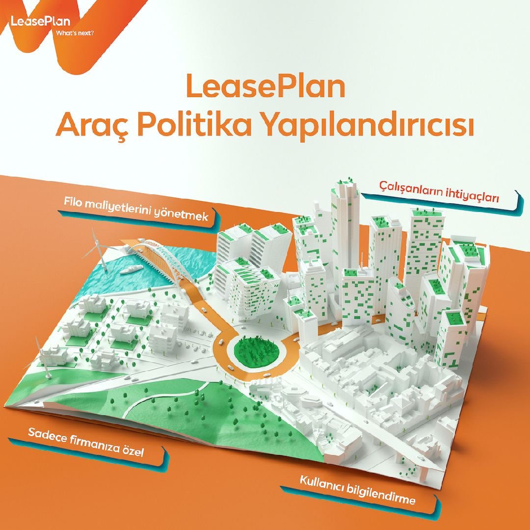 Dünyanın en büyük filo kiralama şirketlerinden biri olarak beş kıtada ve 30’dan fazla ülkede dev bir araç filosunu yöneten LeasePlan, değişen mobilite ve çalışan ihtiyaçları doğrultusunda firmaların filo yönetim süreçlerini kolaylaştıracak uygulamalar sunmaya devam ediyor. Bu kapsamda, LeasePlan’in yeni hizmetlerinden olan “Araç Politika Yapılandırıcısı” sadece 1 saat içerisinde firmalar için güncel araç politikası oluşturuyor. Sistem şu şekilde çalışıyor; firma yetkilileri LeasePlan’in internet sitesi üzerinden Filo Yönetimi bölümüne girerek bir toplantı talep ediyor. Alınan talep doğrultusunda LeasePlan temsilcisi kısa süre içerisinde firma yetkilisiyle iletişime geçerek online bir görüşme organize ediyor. Bu görüşmede Araç Politika Yapılandırıcısı platformunda, yaygın olarak kullanılan araç politika örneklerinden ve firmanın ihtiyaçlarından yola çıkılarak en uygun araç politikası belirleniyor. Bu strateji belirlenirken firmaların yakıt tüketim hedef ve düzenlemeleri, şirket içi araç segmentasyonu gibi birçok dinamik de sürece dahil edilerek sadece kendi yapılarına özel bir politika oluşturuluyor. Üstelik şartlar değiştiğinde bu politika da kolayca güncellenebiliyor.