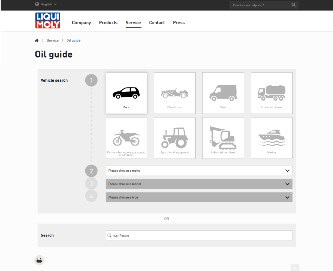 LIQUI MOLY Genel Müdürü Günter Hiermaier, “Yağ kılavuzu, web sitemizin en sevilen bölümü,” diyor. “Burada her gün 5.000 kullanıcı, doğru yağı arıyor. Bunlar arasında hem atölye ustaları hem de sürücüler var.” Birkaç tıklatmayla marka, model ve motor bilgilerini seçip hemen doğru motor yağlarının listesini elde edebiliyorsunuz. Günümüzde her motor yağı aynı olmadığından, bu çok önemli. Yanlış motor yağını doldurmak, tıpkı araca uymayan bir yedek parça takmak gibidir. Bunun sonuçları, garantinin geçersiz hale gelmesinden daha çabuk aşınmaya, motor sorunlarından ciddi motor hasarlarına kadar uzanabilir.