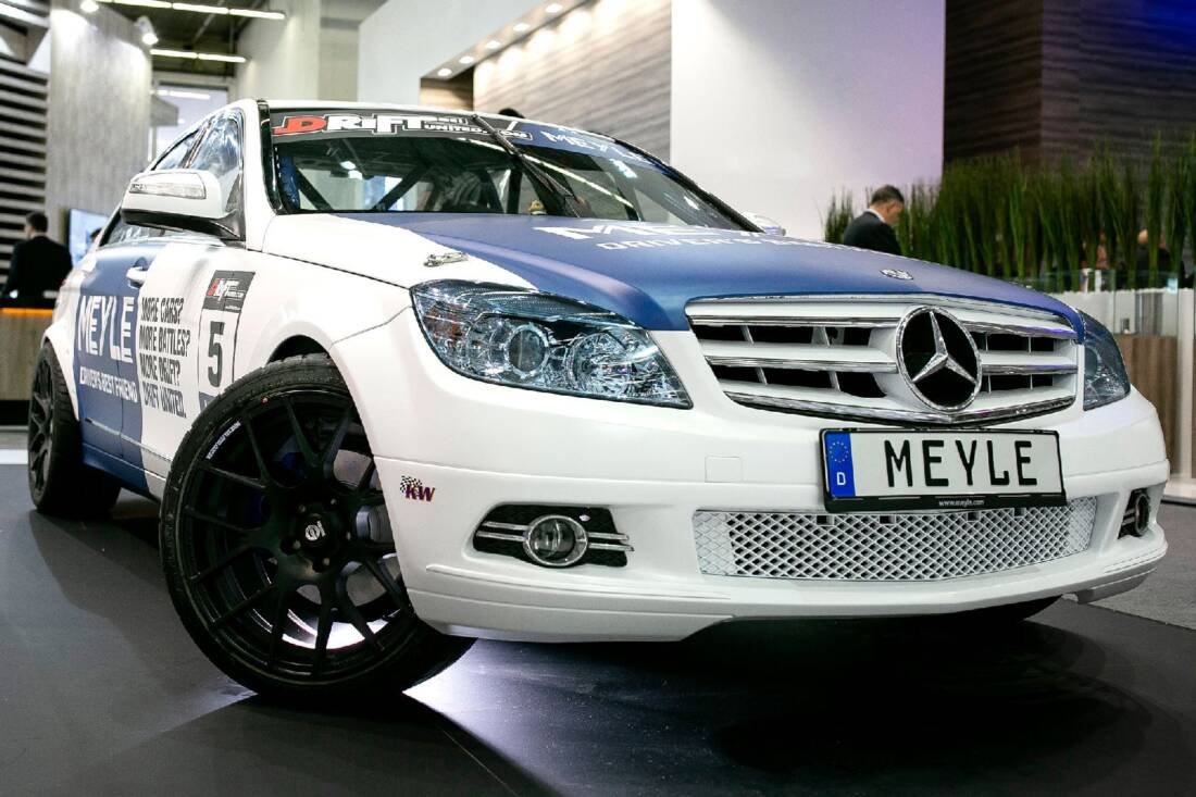 In drifting, the fine art of vehicle control, the chassis and steering parts in particular must deliver maximum performance. To withstand the extremely high loads and minimise wear, these components are specifically designed for the drift vehicle to ensure control during drifting and allow the desired degree of oversteer. The joint development of MEYLE and DRIFT UNITED focused in particular on axis geometry: These were developed by MEYLE engineers for the special drift vehicle – also a unique specimen consisting of the body of the Mercedes Benz C-Class W204 and the powertrain of the Mercedes Benz E 55 AMG. “Controlled drifting on a professional level is not possible with normal steering. This requires a specially designed transverse control arm, which enables a high steering angle and therefore a larger drift angle.Normally, 40 degrees is the limit for road vehicles,” says Martin Montag, founder of DRIFT UNITED. Adjustments to the shape of the transverse control arm in track width and length enable the necessary extension and therefore also more targeted control over the vehicle.