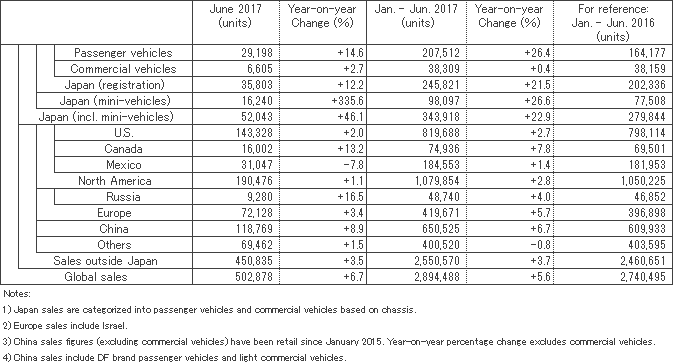 Sales outside Japan surpassed year-earlier results for the fifth consecutive month, setting a record for the month of June. Sales in the U.S. surpassed year-earlier results, setting a record for the month of June.