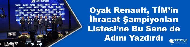 Türkiye İhracatçılar Meclisi (TİM) tarafından düzenlenen 29. Olağan Genel Kurulu ve 2021 İhracat Şampiyonları Ödül Töreni, 13 Haziran’da İstanbul’da gerçekleştirildi. Türkiye İhracatçılar Meclisi’nin her yıl hazırladığı “Türkiye’nin İlk 1000 İhracatçısı” sıralamasına göre Oyak Renault, 2021 yılında 2 milyar (2.018.779.534) dolarlık ihracat gerçekleştirerek, Türkiye’nin ilk 10 ihracatçısı arasında yer aldı.