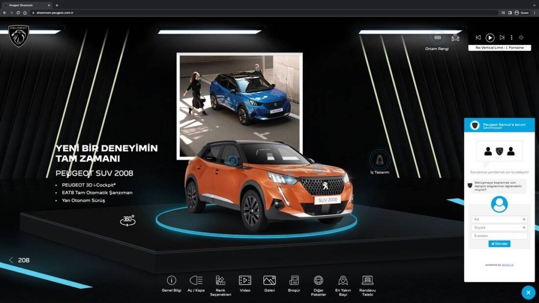 Devreye alınan online showroom ile otomobil severlerin PEUGEOT’nun en gözde modellerini detaylı olarak inceleme imkânı sunuluyor. Çekici tasarıma sahip PEUGEOT modelleri, özel stüdyolarda hem dışı hem de içi 360 derece olarak gerçekçiliği en yüksek seviyede yaşatacak şekilde fotoğraflandı. Bu fotoğrafların birleşmesi ile görsel bir şölen sunan online PEUGEOT showroomu müşterilerine aradıkları öncelikli her bilgiyi sunmasıyla da öne çıkıyor. Bu yeni yapılanma sayesinde, teknik verilerden, araç renklerine, özel iç döşemelerden farların görüntüsüne, test sürüşü randevularından en yakın bayinin konumuna kadar birçok bilgi PEUGEOT müşterilerinin evlerine kadar giriyor.