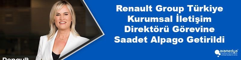 Renault Group Türkiye’nin Kurumsal İletişim Direktörü pozisyonuna, otomotiv sektörünün deneyimli kurumsal iletişimcisi Saadet Alpago getirildi. 1996 yılından bu yana çeşitli firmalarda önemli pozisyonlarda başarıyla görev alan Saadet Alpago, 27 Haziran itibarıyla Renault Group Türkiye’de Kurumsal İletişim Direktörü unvanıyla çalışmaya başlayacak. Bu atama ayrıca Alliance ittifakının yetenek transferi anlamında da büyük önem taşımakta.