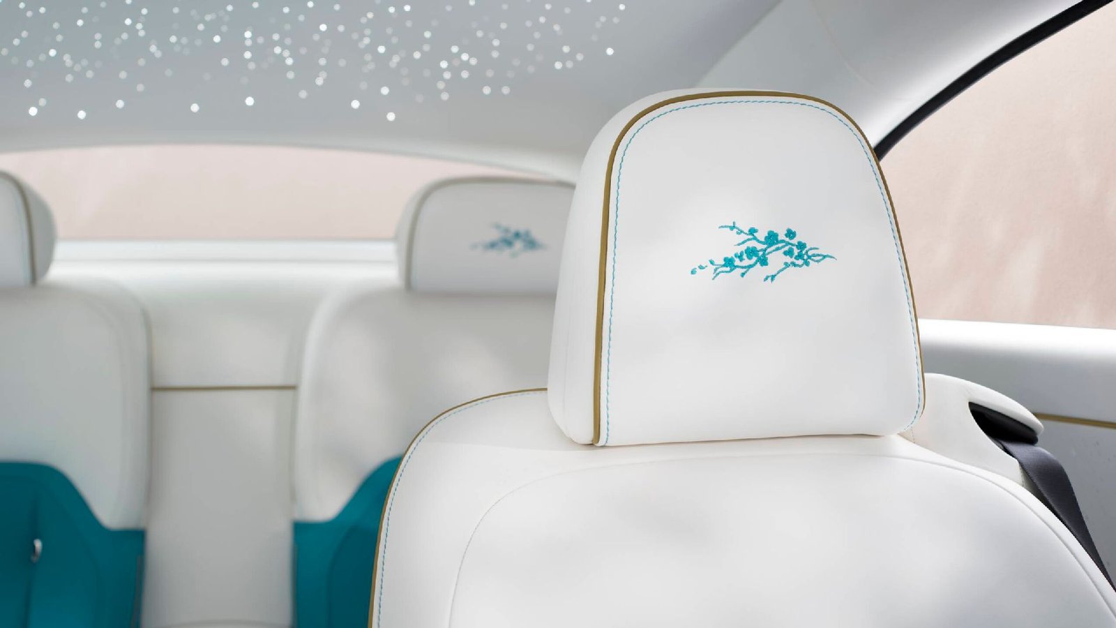 Aracın dış tasarımı, fren kaliperleri ve jant göbeklerindeki ince çizgilerle uyumlu olarak Forge Yellow ile el boyaması yapılmış coachline ve kiraz çiçeği motifleriyle Duck Egg Blue rengine sahip. İç tasarım, Grace White ve Charles Blue derilerin Forge Yellow’un canlı detaylarıyla buluştuğu saf bir estetik sunuyor.