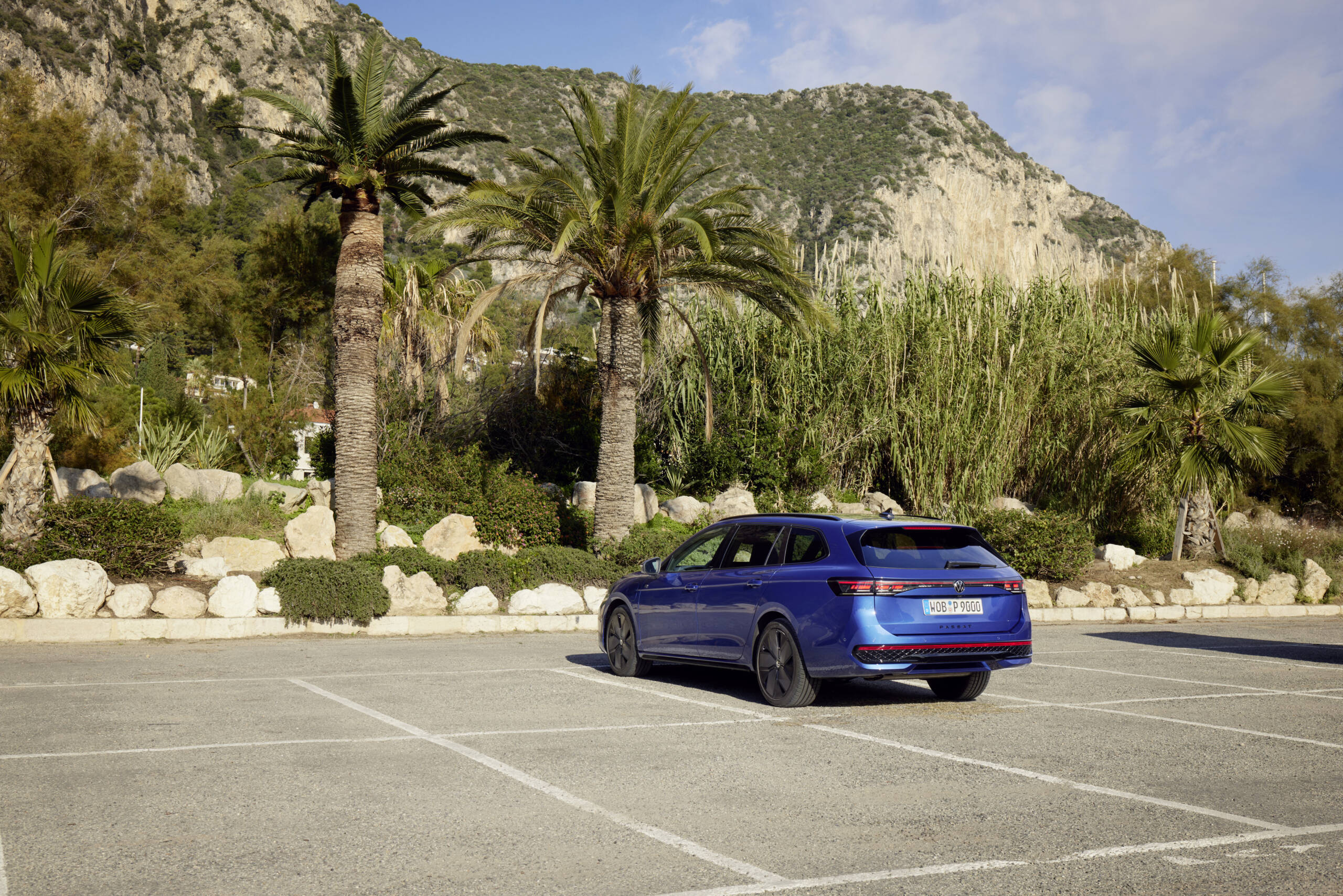Ön kısımda ana far gruplarından Volkswagen logosuna doğru uzanan yatay LED ışık şeridi, yenilenen IQ. LIGHT LED Matrix farlar ve tampondaki geniş hava girişleriyle Yeni Passat göz alıcı bir görünüm sergiliyor. Yanda keskin omuz çizgileri, geniş cam yüzeyleri ve kaslı çamurlukları güçlü bir siluet oluşturuyor. Arkada ise Volkswagen logosuna kadar uzanan kesintisiz LED çizgi dikkat çekiyor. Tüm donanım seviyeleri arka tampon tasarımıyla ayrışıyor. R-Line donanım seviyesinde arka tampondaki baklava deseni görünümlü siyah detaylar araca daha sportif bir hava katıyor. Elegance donanım seviyesinde ise bu kısımda şık krom görünümlü detay kullanılıyor.