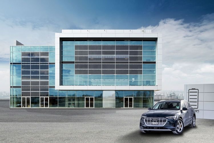 The new building is the first sustainably built property at Munich airport. The glass facades of the futuristic-looking center consist of just under 450 square meters of transparent photovoltaic elements with more than 1,650 solar cells that deliver roughly 42,000 kilowatt hours of electricity per year. This corresponds to the annual power consumption of 10 four-person-households. This electricity generated with solar power can be stored temporarily via two battery storage devices that Audi made from second-life batteries. The self-generated electricity is used for the building itself and for charging electric cars. There are a total of six charging points in front of the building, including two 150 kilowatt fast charging points. These charging terminals have been added to the 78 charging points of AUDI AG’s electric charging park at Munich airport, making it one of the largest contiguous charging parks in all of Europe.