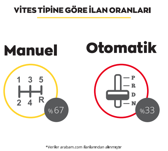 Şanzıman tipine göre ilanların dağılımında en büyük payın düz vitesli araçlarda olduğu görülüyor ancak düz vitesli araçlar mart ayında %2’lik düşüş yaşayarak ilanların %67’sini oluşturuyor. Yarı otomatik vitesli araçlar ise %2’lik artış göstererek ilanların %17’sini oluşturuyor. Düz vitesli araçlarda yakıt tüketimi daha az olduğundan ve otomatik vitesli araçlara göre daha ucuz olduğundan tüketicilerin uygun bütçeli araçlara yöneliminin olduğunu söylemek mümkün. Otomatik vitesli araçların ilan oranı ise %16 olarak devam ediyor. Mart ayı ilanlarının şanzıman tipine göre dağılımı aşağıdaki gibi:
