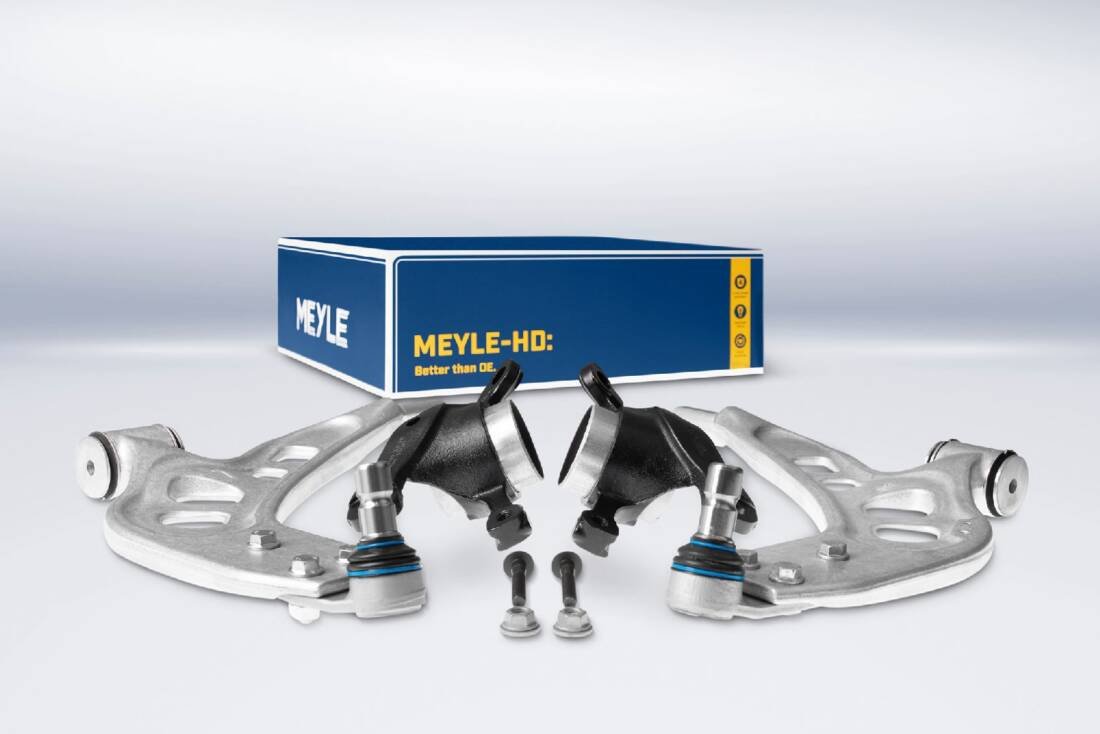The kit scores with numerous advantages compared to its OE counterpart. Manufactured from high quality aluminium, it provides improved strength and durability of the part. The smooth surface, which is created from a single piece, is not only a visual highlight, but is also less susceptible to cracking. In addition, the control arms are very well protected against corrosion by the aluminium used. At 4.2 kilograms, the control arm is just under 20% lighter than OE. This not only reduces the total weight of the vehicle, but also lowers costs on day-to-day workshop and shipping activities, and saves required storage space. A further detail makes the control arm particularly sustainable: The MEYLE-HD ball joint, which is larger than the OE part, is individually replaceable and offers the advantage that not the complete control arm, but an individual component can be replaced selectively. Cost saving that benefit the workshop and driver alike.