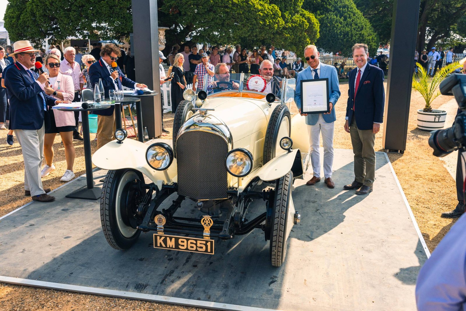 The winner in the 1920s category was a superb example of Bentley’s first car, the 3 Litre – a groundbreaking engineering achievement that quickly established the brand’s reputation in the automotive world. Powered by a 3-litre four-cylinder engine with a single overhead camshaft, it produced 70bhp and featured advanced technology for its time. The car’s racing debut at the 1923 Le Mans 24 Hours, where it narrowly missed the podium, laid the foundation for Bentley’s long and successful association with the race. 1,600 units of the 3 Litre were produced until 1929, including chassis TN1564, which was first owned by Francis Ronald Lambert Mears in India. The triumphant machine was making its first appearance in public in over 60 years, following a painstaking three-year restoration process.