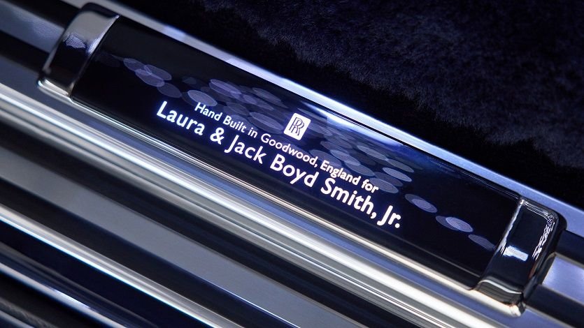 Otomobil kapılarını açarken, kişiselleştirilmiş bir eşik plakası, ‘Laura ve Jack Boyd Smith, Jr. için Goodwood, İngiltere’de El Yapımı’ yazıyor Phantom’un ön panosunun karşısında, müşterilerin arkasında benzersiz sanat eserleri sipariş edebileceği kesintisiz bir cam parçası olan Galeri yatıyor. Koa Phantom için ahşabın kendisi ön plana çıkıyor, korunuyor ve otomobilin kalbinde sergileniyor ve doğal güzelliğini sergiliyor.