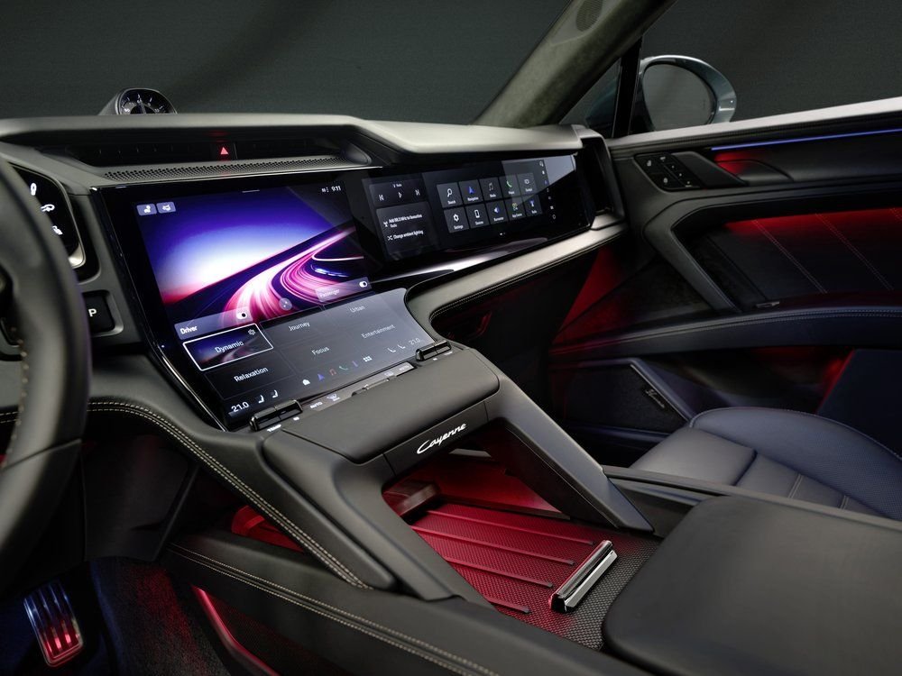 Yeni Cayenne Electric, Porsche’de bugüne kadar sunulan en büyük ekran yüzeyine sahip yeni dijital işletim konsepti, artırılmış konfor ve çok daha fazla kişiselleştirme imkânı ile iç mekân deneyimini yeniden tanımlıyor