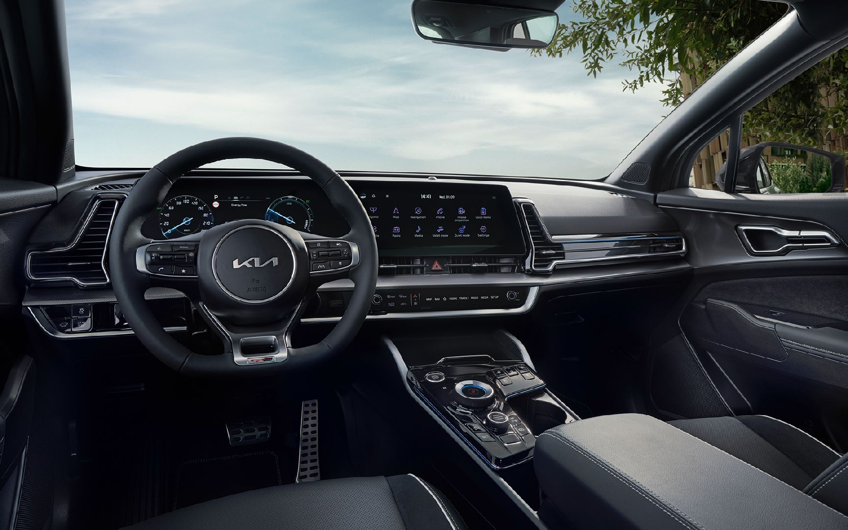 Yeni Sportage’ın iç tasarımı; güçlü bir karakter ve yenilikçi teknolojilerle son derece gelişmiş ve sürücü odaklı bir yapı sergiliyor. Yeni Sportage’ın ön konsol tasarımında dokunmatik ekranlı, zarif detaylara sahip ve sportif havalandırma ızgaralarıyla bütünleşik kavisli bir ekran bulunuyor. Kavisli ekran, kokpite genişlik ve derinlik kazandırıyor. Yüksek teknolojiye sahip 12,3 inç dokunmatik navigasyonlu ekran, tüm multimedya bağlantıları, işlevsellik ve kullanılabilirlik ihtiyaçları için merkez görevi görüyor.