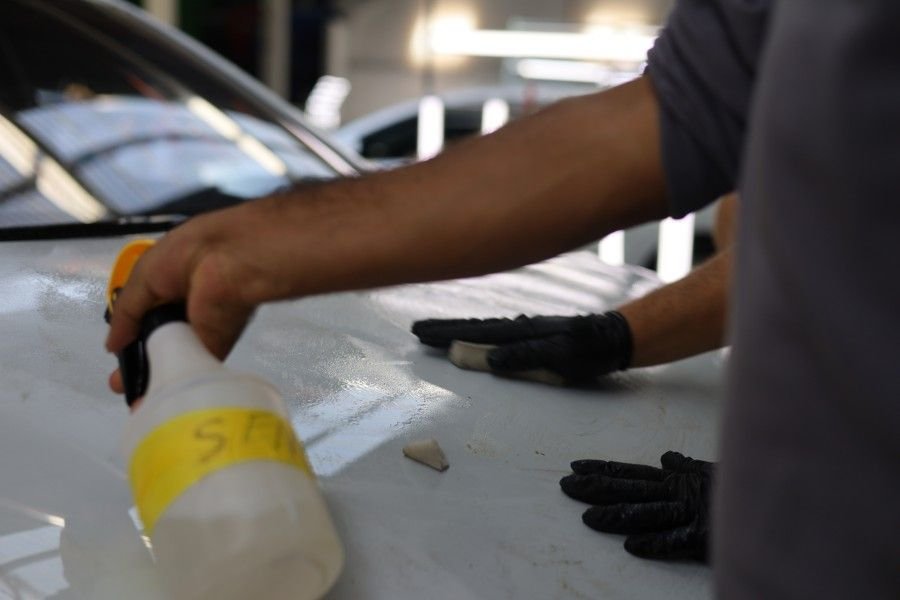 Kuaför bölümünde öncelikle özel kimyas al sıvılarla araç üzerindeki metal tozları ve benzeri istenmeyen materyallerden arındırıldı. Ardından müşterinin isteğine göre iç dış detaylı temizlik, pasta cila ve seramik kaplama gibi işlemlere tabi tutuldu. Bu arada biz de aracımıza iç detaylı temizlik ve pasta cila uygulaması yaptırdık. Tüm aşamalarda aracımızın başındaydık ve kendi araçları gibi özenli çalışmalarına şahit olduk.