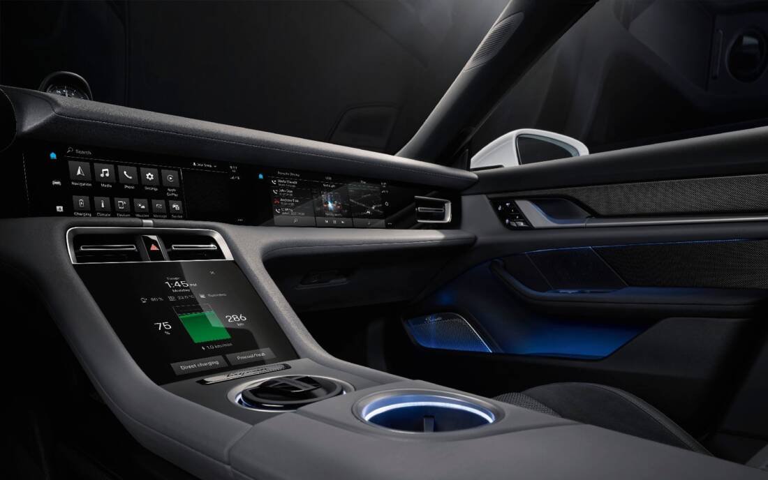 Tüm kullanıcı arayüzleri Taycan için yenilenmiş. Geçiş anahtarları ve düğmeler gibi geleneksel donanım kontrollerinin sayısı ciddi şekilde azaltılmış. Dokunmatik kullanım ve “Hey Porsche” komutuna cevap veren ses sistemi ile kontrol akıllı ve sezgisel hale getirilmiş.