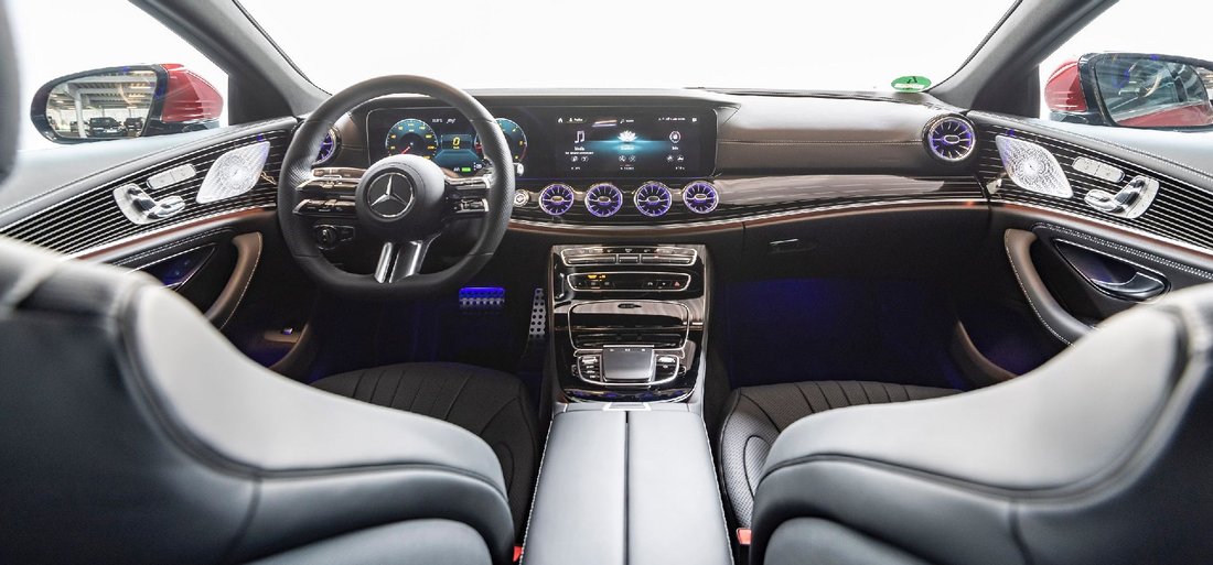 Mercedes-AMG, ailenin sportif üst modelini çok sayıda görsel vurgu ve çekici donanım paketleriyle güncelledi. Siyah kanatlı ve görünür hava perdeli “A-Wing” şeklindeki sportif AMG tampon ile yenilenen dikey desteklere sahip AMG imzalı ön ızgara, birçok noktası yenilenen CLS 53 4MATIC+’daki standart yeniliklerden bazıları. Cam çerçeve çıtaları cilalı alüminyum veya AMG Gece Paketiyle birlikte parlak siyah olarak sunuluyor. AMG Gece Paketi veya AMG Dış Mekan Karbon-Fiber Paketi II’ye sahip versiyonlarda sırasıyla parlak siyah ve karbon-fiber ayna kapağı sunuluyor. Mercedes-AMG sürücüleri CLS’yi yeni nesil nappa deri direksiyon simidi ve bilinen AMG direksiyon simidi kumanda tuşları ile kontrol edebiliyor.